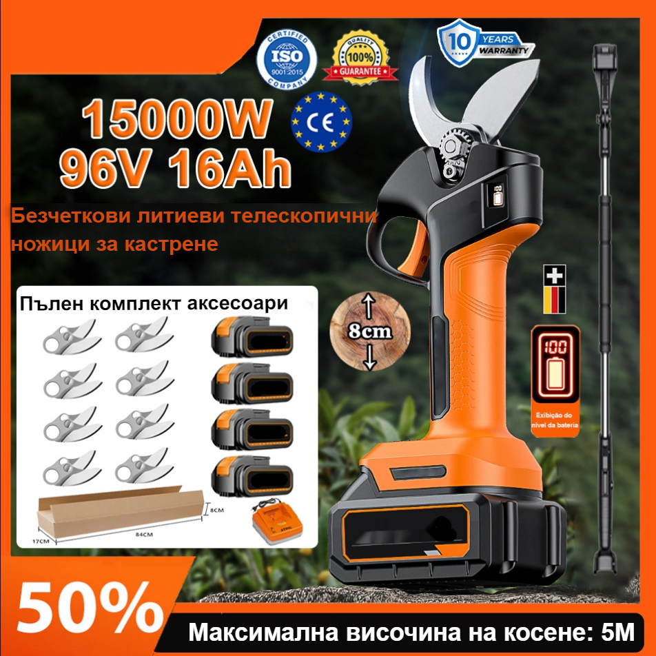 За да отпразнуваме пускането на пазара на новата литиево-йонна безчеткова телескопична ножица за кастрене от 2025 г., ние предлагаме специална оферта: първоначалната цена от 190 лв сега е само 100 лв. (Само първите 50, до утре, купете сега!)